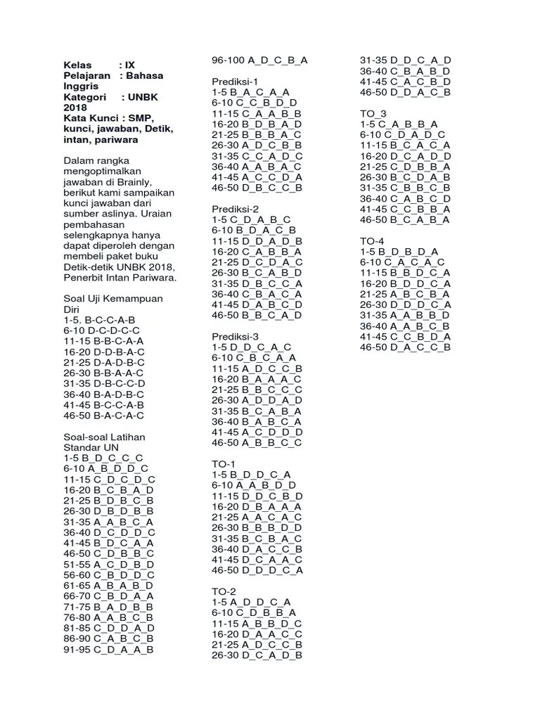 Bahasa indonesia latihan menghadapi ujian nasional no. Kunci jawaban detik detik sd 2019 bahasa indonesia prediksi 3 . Prediksi soal dan kunci jawaban un matematika smp tahun 2016 atau tahun. Amanat merupakan pesan yang disampaikan pengarang melalui karyanya. Detik detik usbn sejarah indonesia dma ma tanpa kunci jawaban.
